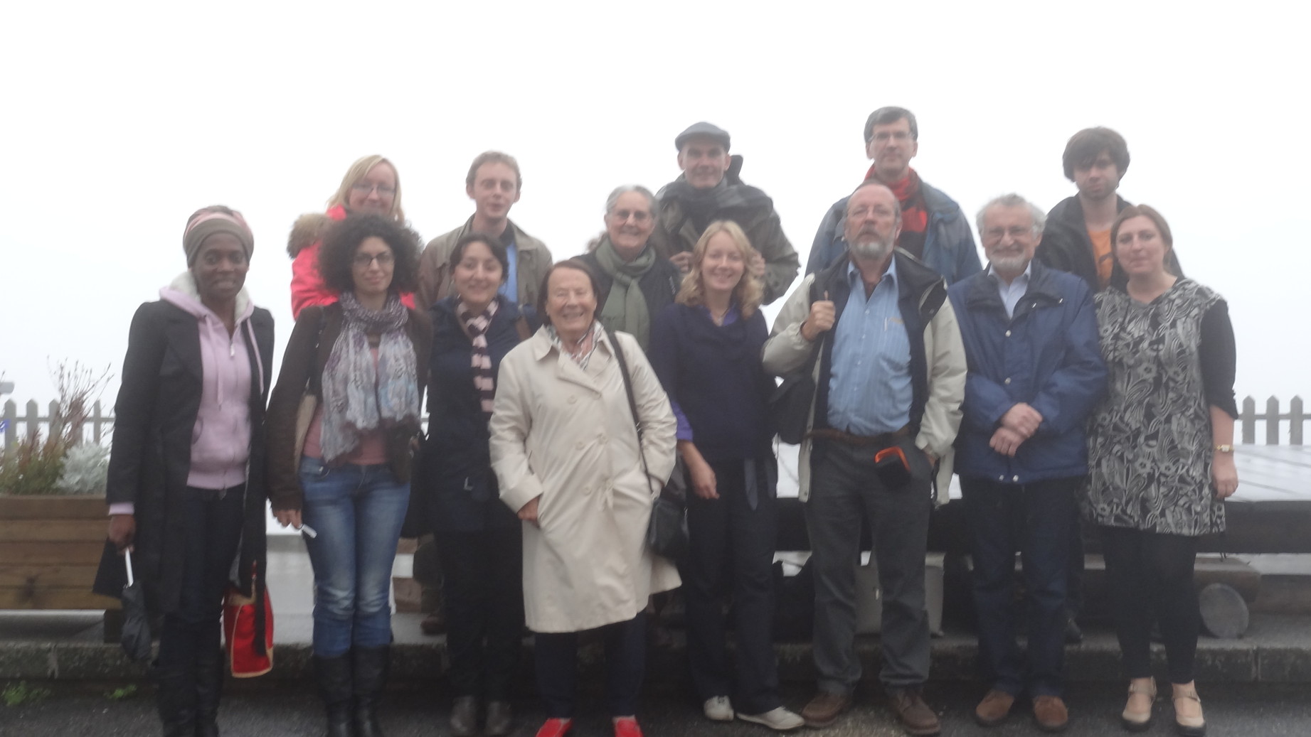 | photo de groupe dans le brouillard | village et drapeaux | |||||||||