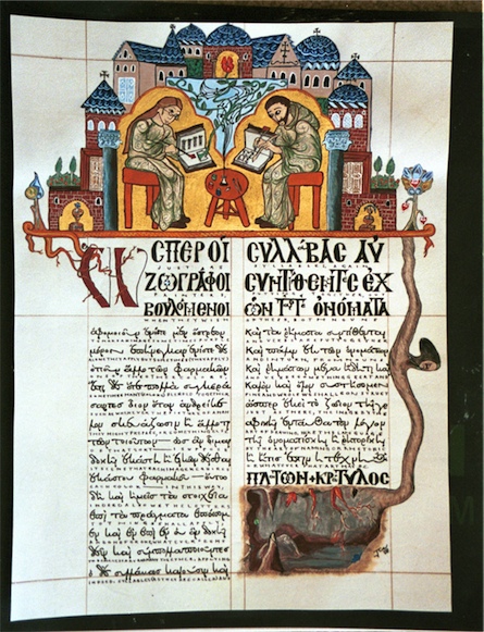Au Vème siècle av. JC, à Athènes, l’alphabet phénicien est adopté, la poésie homérique est fixée par écrit : des difficultés de lecture et d’interprétation émergent, car c’est une écriture majuscule, continue, sans espaces, non ponctuée ; lire s’apparente plus à un déchiffrement et les ambiguïtés, causées par l’écriture, sont légion. Ce qu’on nommera plus tard l’étymologie permet d’identifier les mots équivoques. A l’époque de Platon (428-348 av. JC), le langage se base sur la spéculation sur les « lettres », ainsi que sur la grammaire, qui reposait sur l’apprentissage élémentaire de la lecture, de l’écriture, et sur la lecture commentée des poètes.