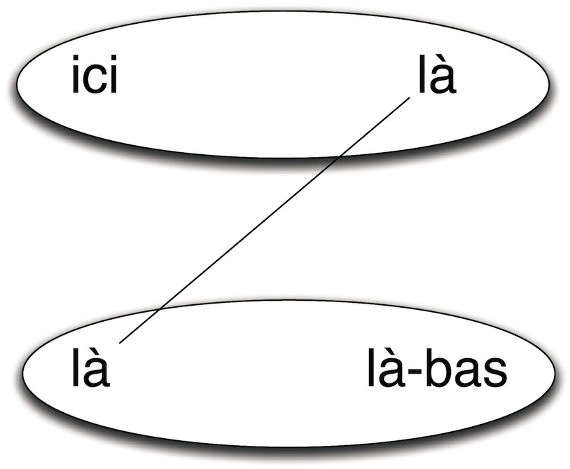 On peut aisément illustrer cela à l'aide de l'exemple suivant: dans la langue française classique du XVIII siècle, le terme « ici » désigne « là où se trouve le sujet parlant », alors que « là » désigne un lieu distant. L'évolution de la langue a conduit à une « mutation » du sens de ces mots qui ont perdu la caractérisation qu'ils avaient un siècle plus tôt. Selon une logique grammairienne, cela pose un problème car cela signifie que l'endroit désigné par le passé par le terme « là » n'existe plus!!! Les structuralistes montrent qu'en réalité le relation « ici - là » existe toujours à travers la relation des mots.