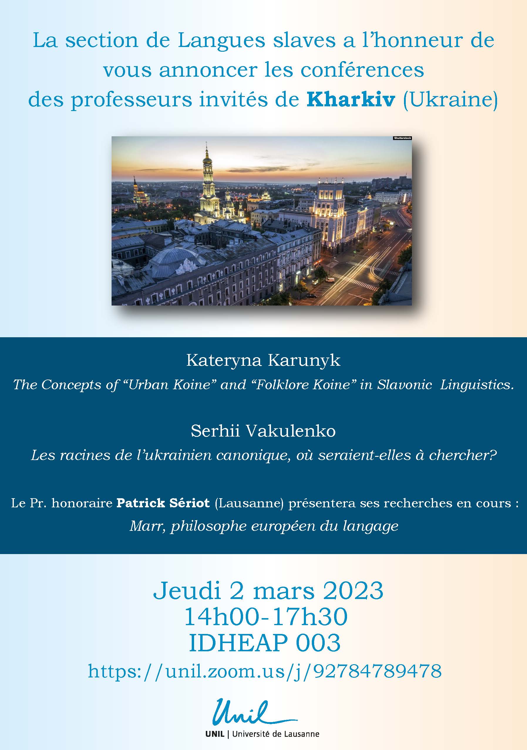 Le 26 février Serhij Vakulenko (Université de Kharkiv, Ukraine) présente une conférence à l'université de Lausanne: