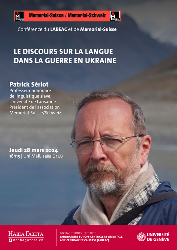 28 mars Patrick Sériot présente une conférence à l'Université de Genève: «Le discours sur la langue dans la guerre en Ukraine»