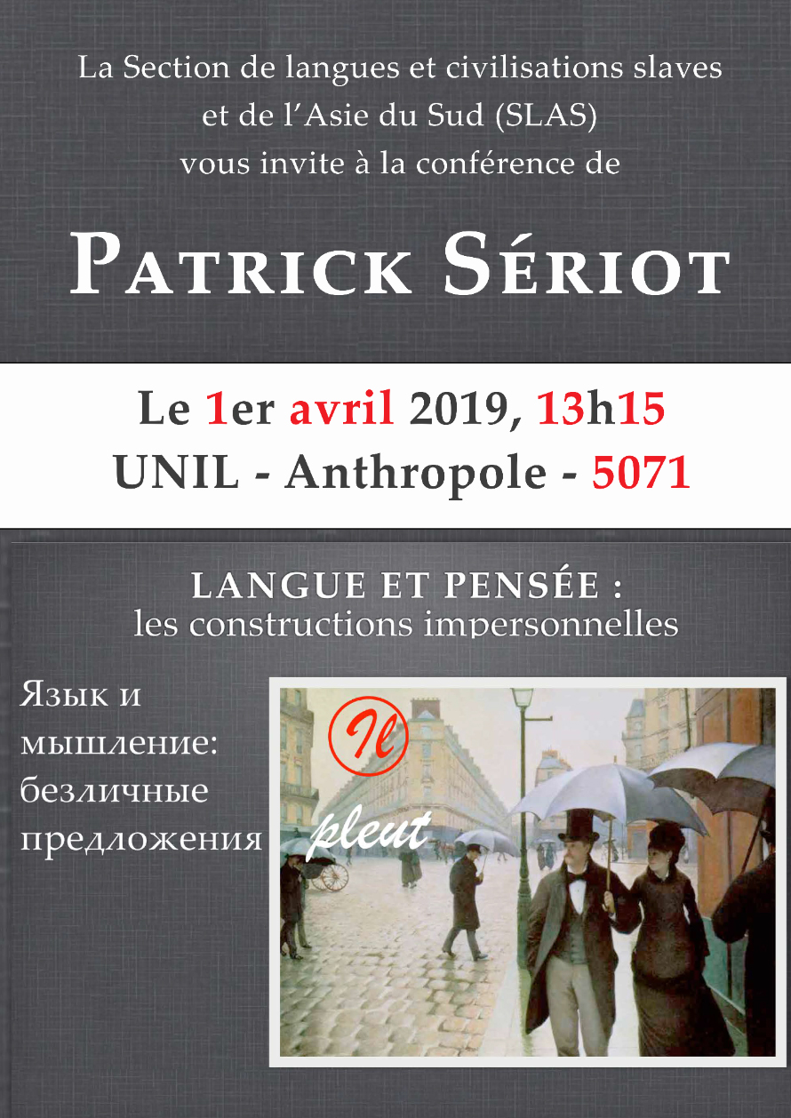 — 2 mars : Patrick Sériot donne une conférence à l'université de Lausanne : «N. Marr, philosophe européen du langage» (présentation d'un travail en cours)