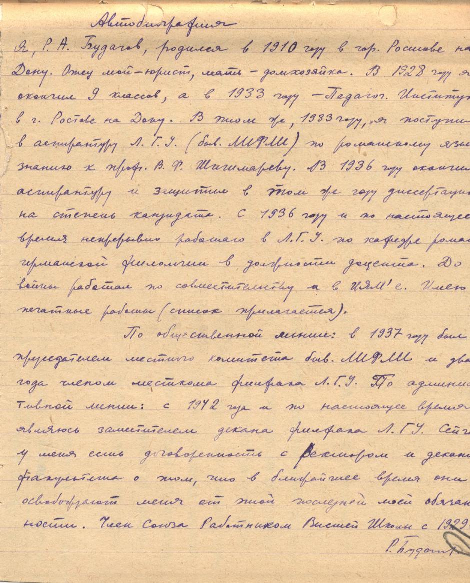 Autobiographie (source : Институт лингвистических исследований, Санкт-Петербург)