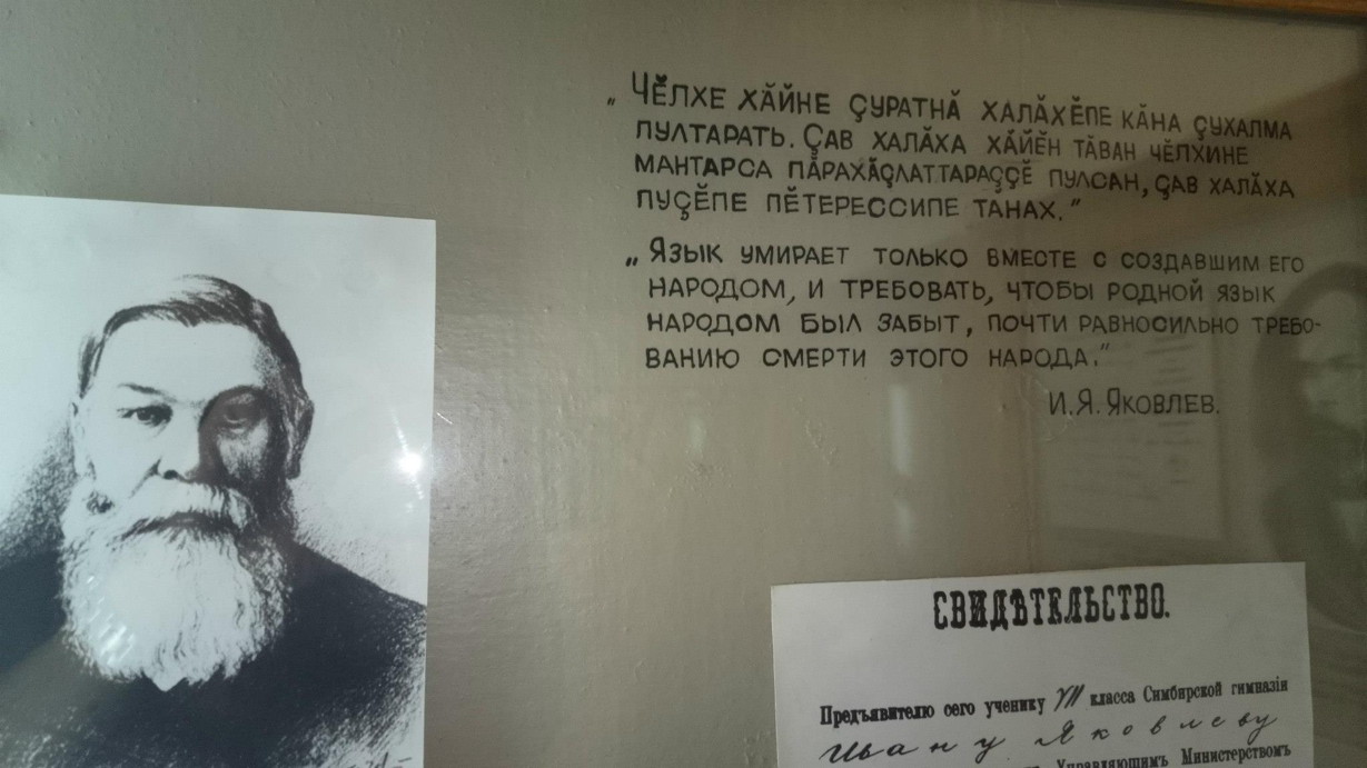 | Citation de Yakovlev, vénéré comme un éveilleur national en Tchouvachie, au musée littéraire Sespel Missi à Cheboksary |