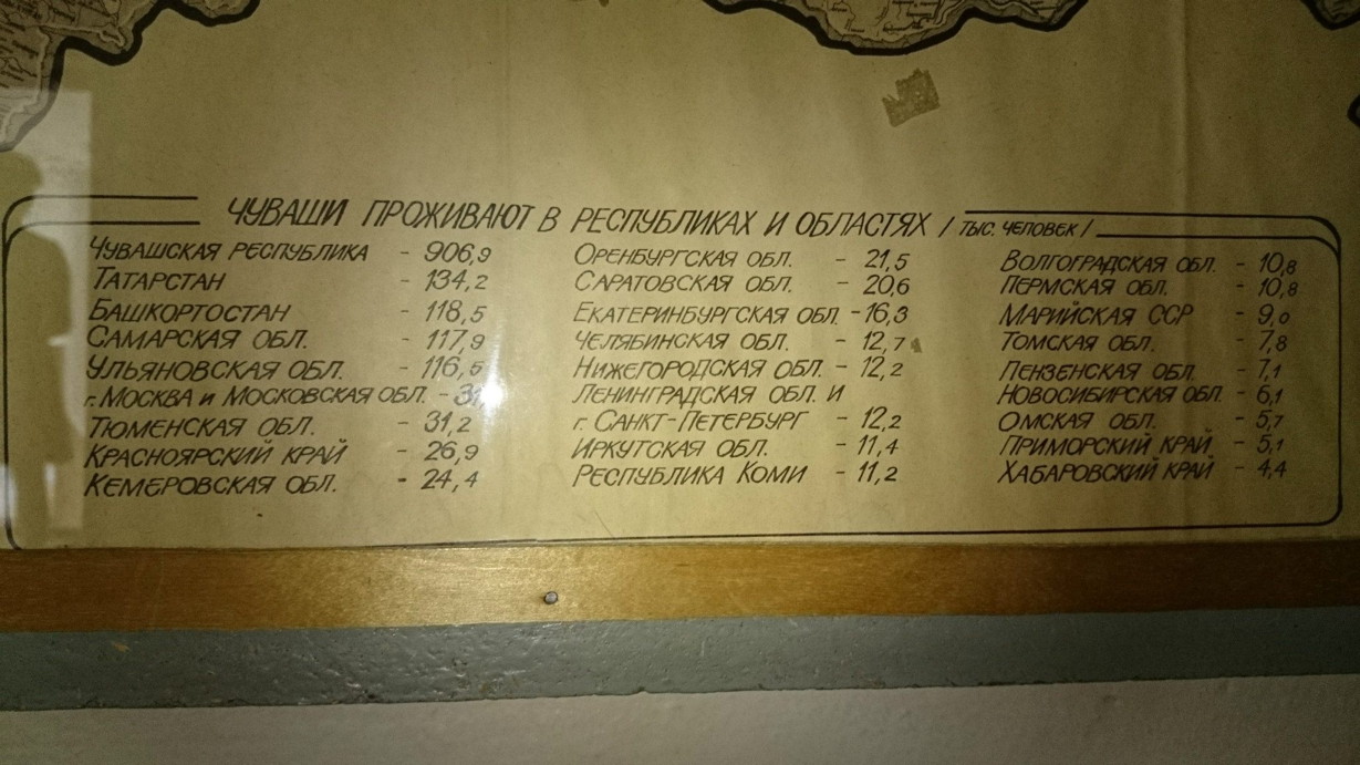 Légende d'une carte des lieux où vivent les Tchouvaches en URSS selon le recensement de 1989, école de Tury Achak/Verhnie Achaky (Tchouvachie) |