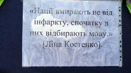 | «Je suis un lèche-bottes et je parle seulement ma langue maternelle : le russe!» | «Je suis une traînée et je parle ma langue maternelle : le russe!» | ||||