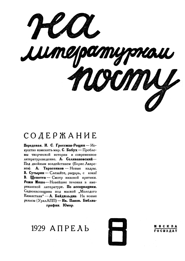 La revue de la RAPP (РАПП : Российская ассоциация пролетарских писателей)