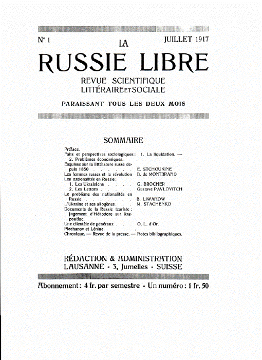 La Russie libre. revue scientifique, littéraire et sociale,paraissant tous les deux mois.