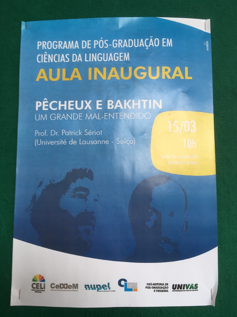 15 mars: Universidade de Pouso Alegre: «Pêcheux, Bakhtin: um grande mal entendido»