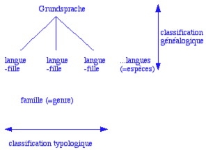 Michel Foucault a montré dans le chapitre «classer» de son ouvrage Les mots et les choses (1966, p. 137-176) les hésitations entre une classification typologique et une classification généalogique à l’époque romantique. Comme en biologie, à une classification «linéenne» (classification de haut en bas, ou «artificielle», reposant sur des critères choisis de façon arbitraire) va succéder une classification de bas en haut, ou classification «naturelle» dans la seconde moitié du siècle.