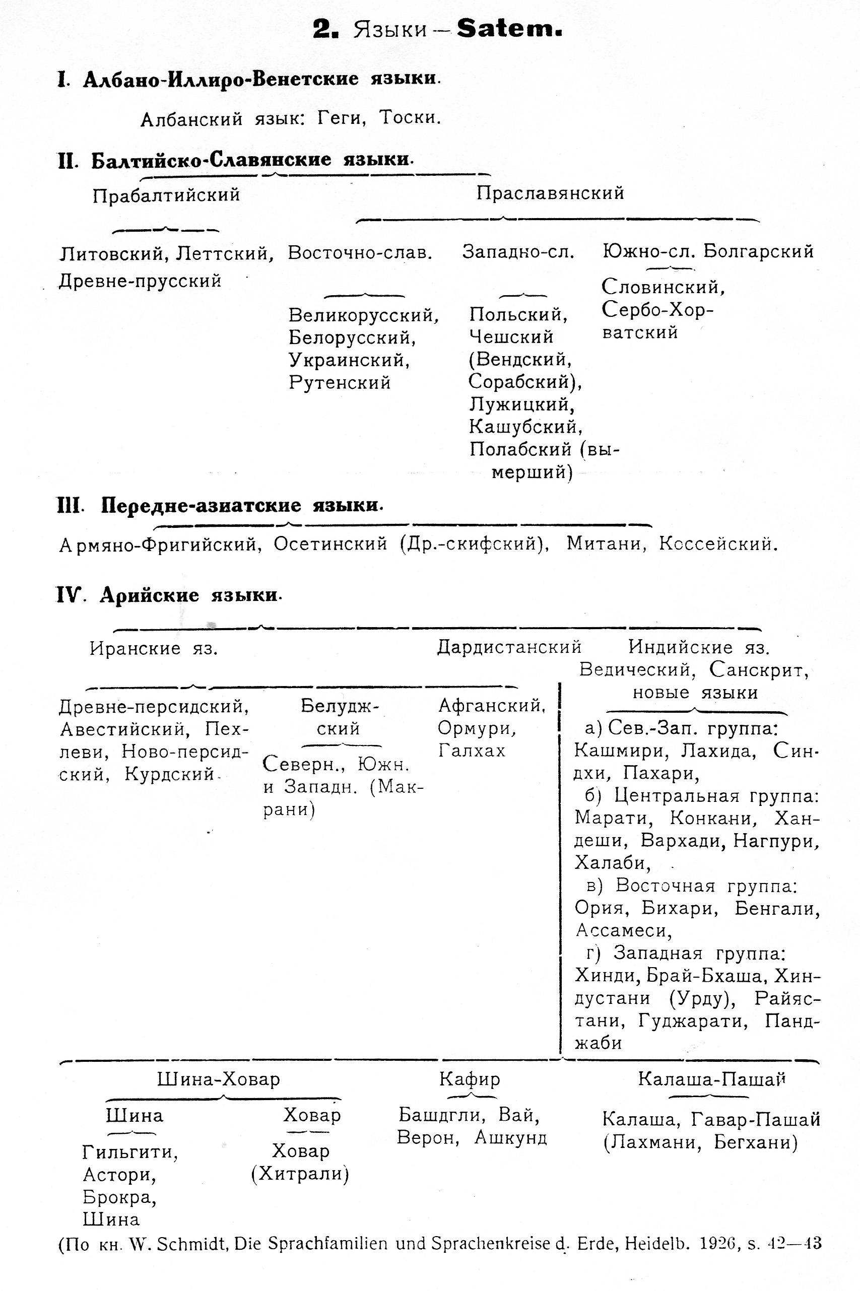 К этому и подходит теперь лингвистическая наука. Мы имеем в виду не так давно вышедшую работу одного из представителей т. н. историко-культурной школы этнографов, В. Шмидта: Die Sprachfamilien und Sprachenkreise d. Erde, Heidelb. 1926.