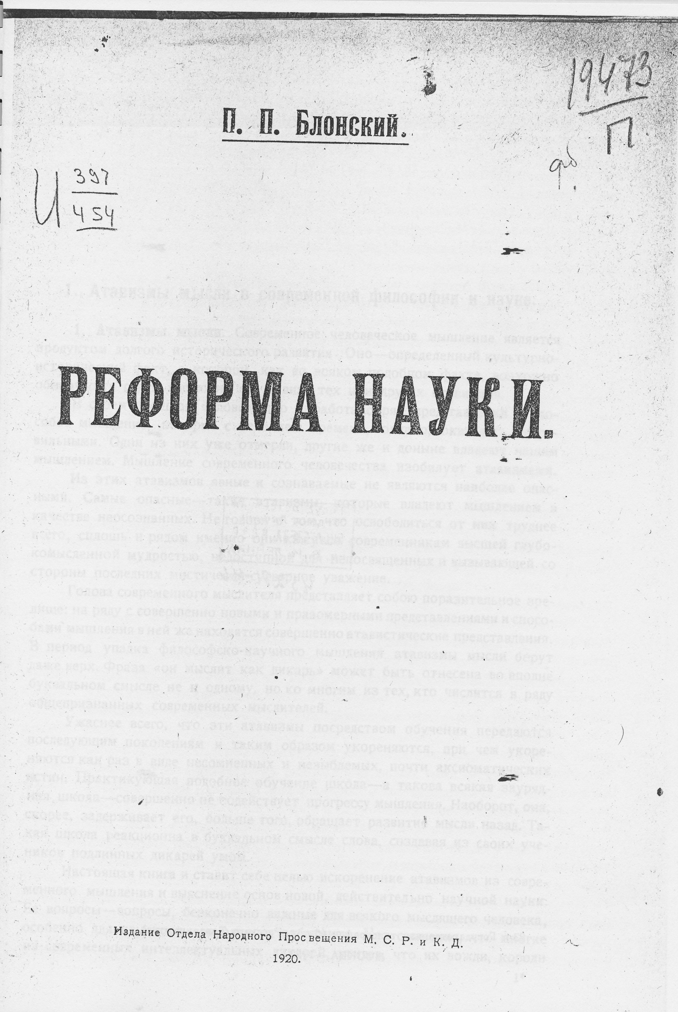 Но бесконечно нуждающийся в технологическом образовании и легко могущий от техники машинного производства перейти к современной математической физике и экспериментальному естествознанию, воспринимающий марксистскую социологию, как свою собственную, настроенный вполне рационалистически и действенно, класс пролетариата проявит вполне и положительное творчество в области науки и философии. Развертывая новую жизнь, он неизбежно развернет и новую науку: даже сейчас в рабочих университетах полуграмотный рабочий, пишущий на темы рабочей жизни, пишет часто научную работу. Он не только творец нового общества, но, тем самым, и новой науки и новой образованности и школы. Все действительно новые слова в этих областях принадлежат в будущем только ему и тем, кто с ним.
