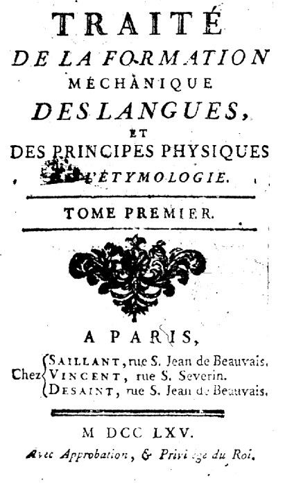 Pour réussir à cette espèce d’analyse, il a fallu remonter jusqu’aux racines qui ont produit les mots usités dans le langage humain, en découvrir le premier germe, et suivre les développements de branches en branches, observer comment et pourquoi ils ont été produits tels qu’ils frappent notre oreille, en un mot, arriver au dernier degré de l’analyse, aux principes les plus simples et vraiment primitifs, puisqu’il est très vrai qu’ici, comme dans tous les effets naturels, les grands développements qui nous affectent