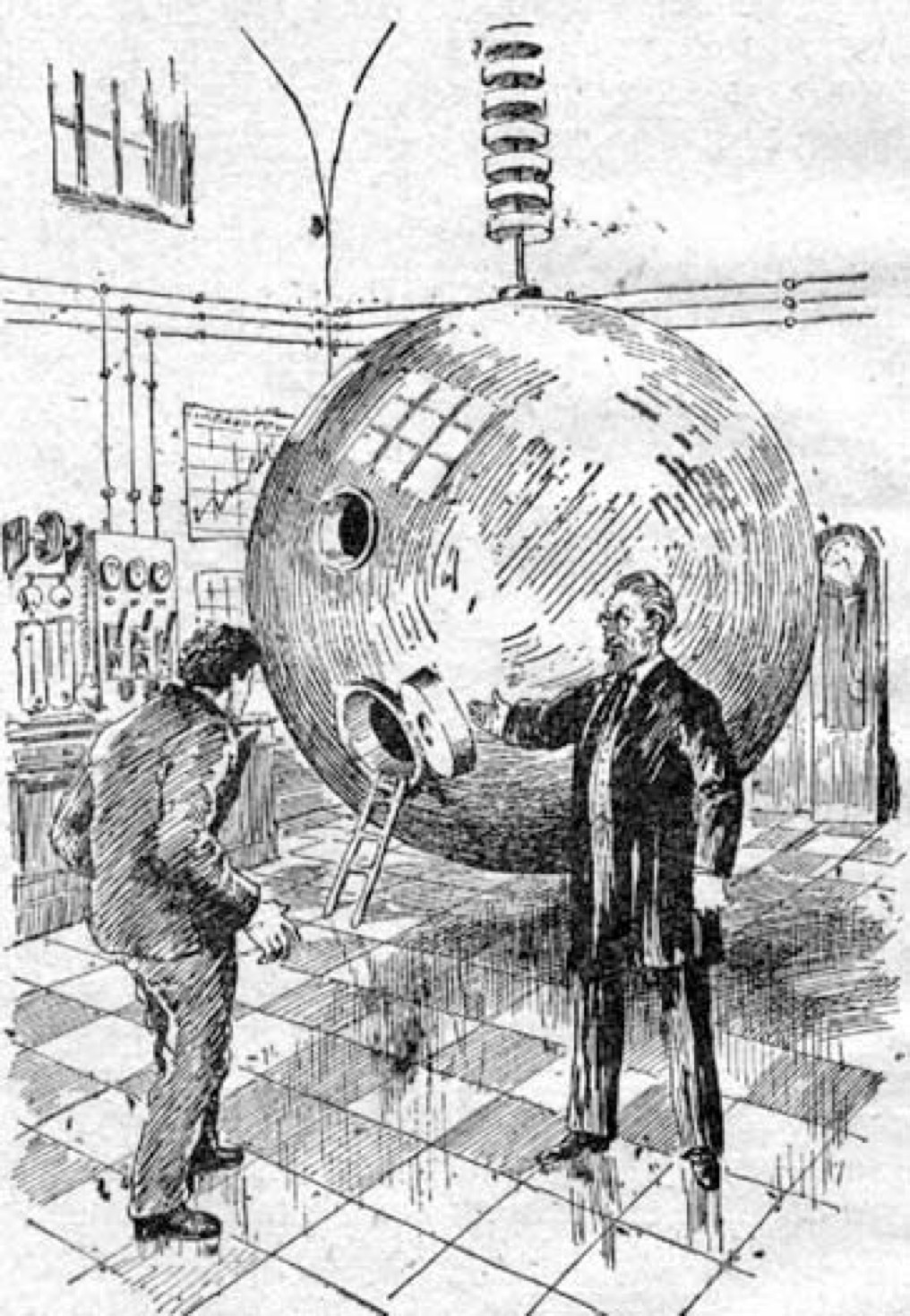 И с этими словами профессор повел меня в соседнее помещение своей лаборатории. В отличие, от первой комнаты, где мы только что были, здесь имелось очень немного приборов; середину ее занимала шарообразная камера, высотой около 3 — 4 метров, с двумя небольшими круглыми иллюминаторами, закрытыми толстыми стеклами, и входным, тоже наглухо закрытым лазом. Это было все, что я мог рассмотреть.