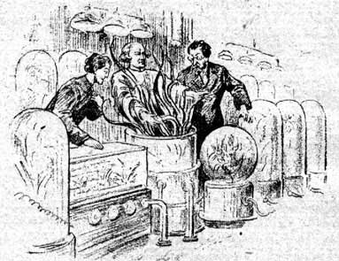 — Видите, — продолжал профессор свои объяснения. — В этой камере помещается путешественник с запасом кислорода и пищи: ведь неизвестно, в каких физических условиях будет произведена высадка. Внутри судна помещены машины, вырабатывающие и превращающие электрическую энергию в особого рода эфирные колебания, а также все приборы для управления, контроля и наблюдения. Я должен предупредить вас, что опасность не исключена. Вы мне спасли жизнь, и я не могу еще раз заставить вас рискнуть своей. Подумайте перед тем, как согласиться.