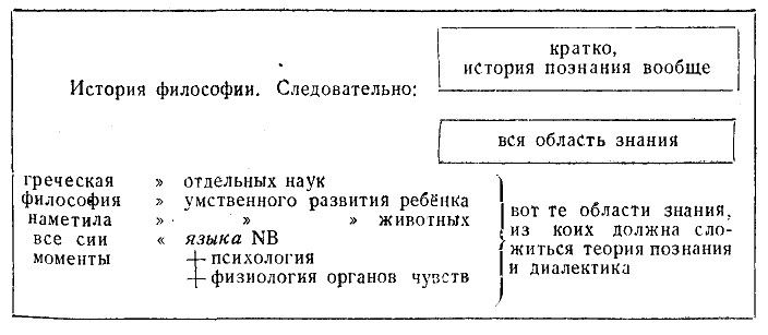 Таким образом, выступающие в современного состоянии того или иного языка как непонятные причудливости его структуры грамматические его формы становятся понятными, если мы будем рассматривать их в их возникновении, в связи с развитием мышления. Такие явления, как категория грамматического рода, сохранившаяся в современных индоевропейских языках, или как категория двойственного числа, ими утраченная, наполняются живым содержанием, когда мы сопоставляем их с аналогичными формами более архаических языков и рассматриваем их в свете истории развития человеческого мышления. На это значение истории языка как одного (и важнейшего) источника истории и теории познания и указывает Ленин в своей известной схеме[24]: