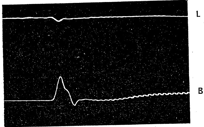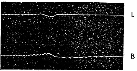 [2] Синхроническая (одновременная) запись на кимографе (вращающейся поверхности) воздушной струи, выходящей из полости рта говорящего, и колебаний его голосовых связок, произведенная нами по методу Панкончели—Кальциа (с. рис. № 3), позволяет определить в отношении смычных — не только их длительность, высоту и характер взрыва смычки, но и степень их озвончения и наличие дополнительных артикуляционных работ гортани.