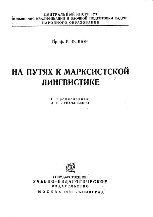НА ПУТЯХ К МАРКСИСТСКОЙ ЛИНГВИСТИКЕ
