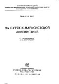| На путях к марксистской лингвистике | 7 |