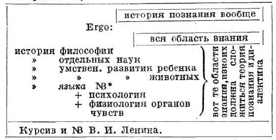 Продолжением этих мыслей Маркса являются следующие его утверждения: «Даже основной элемент мышления,—пишет Маркс,— элемент, в котором обнаруживается жизнь мысли—язык—чувственная природа». Но язык как общественное явление, хотя и представляет собою явление чувственной природы, однако эта последняя выступает здесь в виде природы, возведенной на степень общественного бытия. Следовательно всякое сведение языка к какой-либо системе рефлексов или иной физиологической функции в корне противоречит существу языка, данному в установке Маркса. Т. о. язык, по Марксу, есть явление надстроечного порядка, «реальное сознание», он следовательно форма объективации общественного сознания, которое является отражением общественного, классового бытия. Специфическое отличие языковой деятельности от прочих видов человеческой деятельности заключается в том, что эта деятельность направлена к осуществлению взаимной связи, общению людей. Без этой объективации, материализации сознания, в виде наиболее простых, непосредственных и универсальных орудий общения, находящихся в своеобразном сочетании на каждом этапе развития отдельного человеческого коллектива, связь людей не была бы возможной. Это положение выражено в замечательной схеме Ленина (в замечаниях на книгу Лассаля о Гераклите).